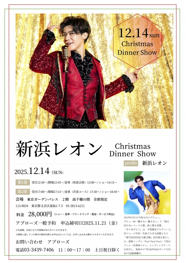 開場12:35〜/お食事 12:45〜(和食会席) ショー 14:00〜