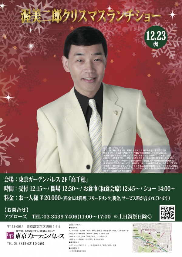 開場:12:45~ /お食事(和食会席)13:00~ ショー 14:30~
